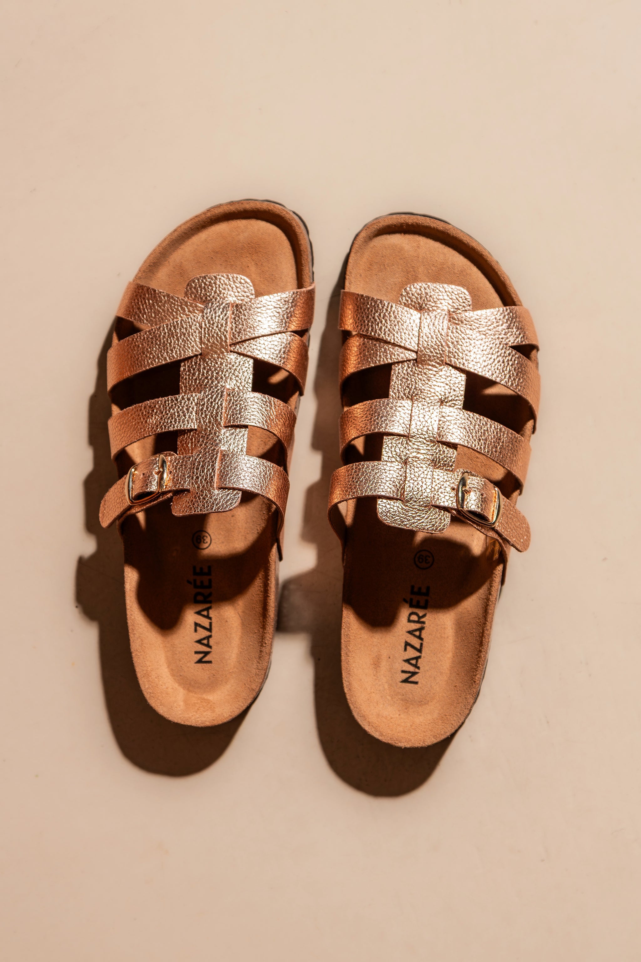 - Boucle dorée réglable sur le coup de pied